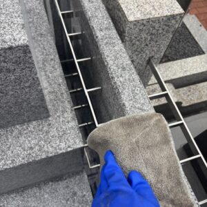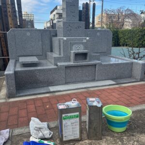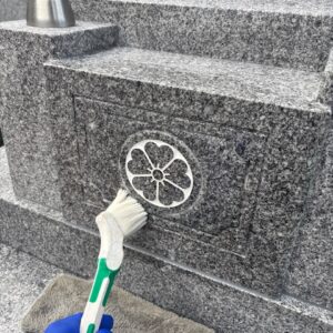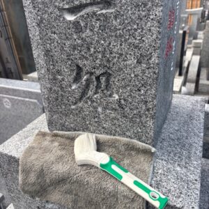 【コーティング】新規墓石の撥水コーティング 2025/12/20 新規で建てられた墓石の撥水コーティングを行いました。 施工場所:港区の寺院様 砂ほこりを取り除いてからコーティング剤を塗っていきます。ムラにならないように刷毛で塗った後はタオルで仕上げていきます。
