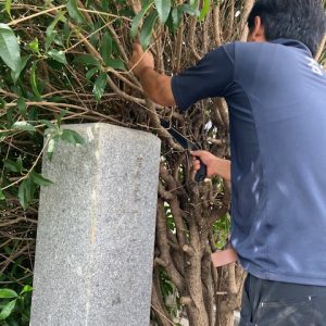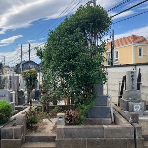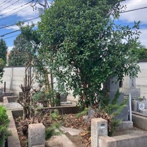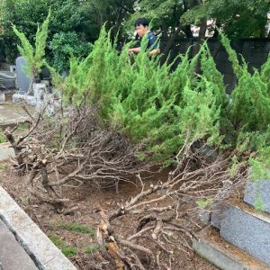 お寺様からのご依頼で墓所内の木々伐採及び雑草除去を行いました。 施工場所:府中市のお寺様